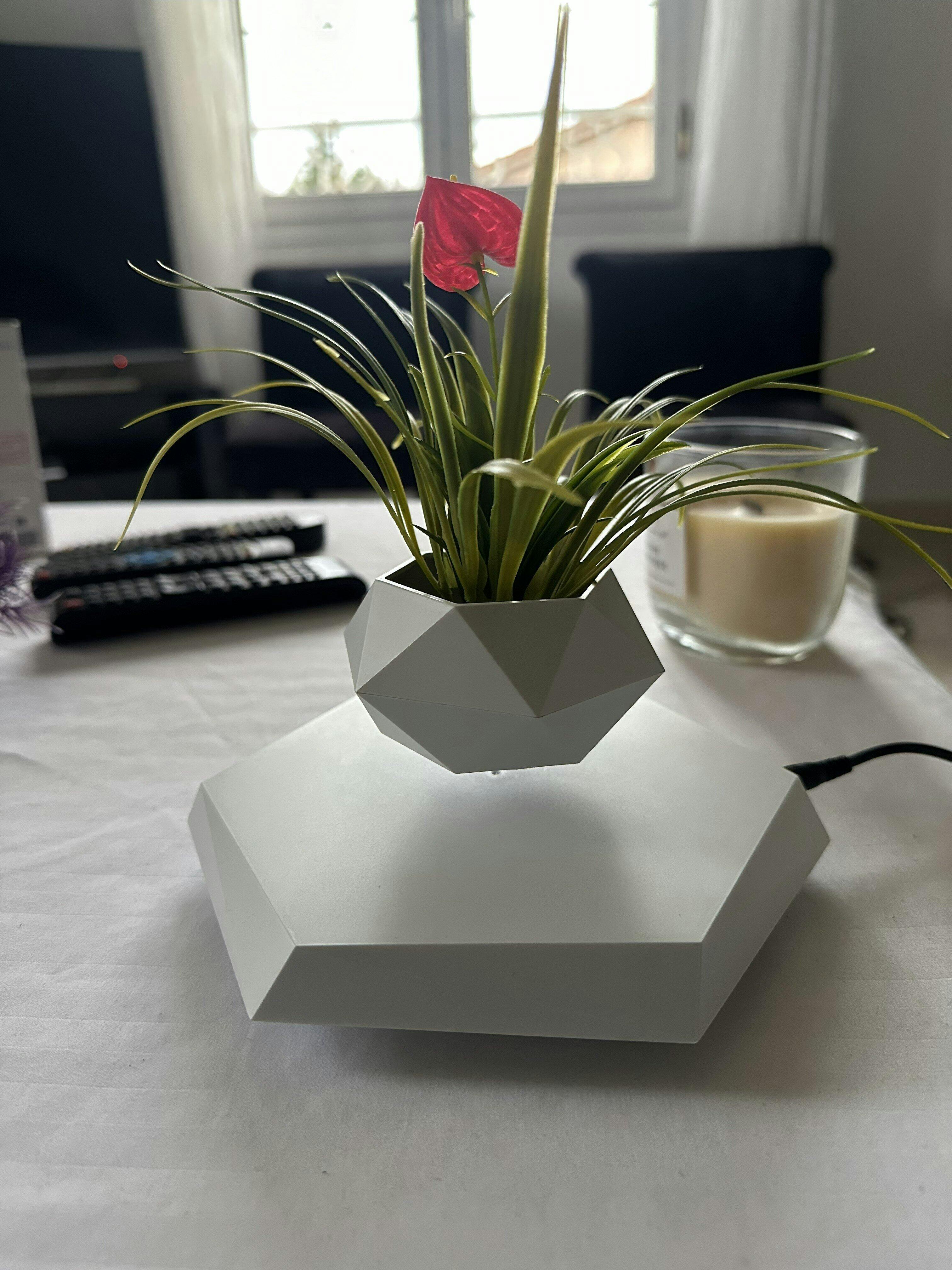 Vous recevez la base magnétique, le pot lévitant et une plante artificielle offerte, soigneusement emballés pour une réception en parfait état.